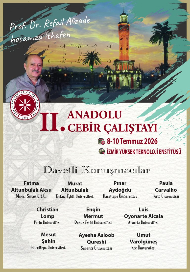II. Anadolu Cebir Çalıştayı (ACC-2026) 8-10 Temmuz 2026 tarihleri arasında İzmir Yüksek Teknoloji Enstitüsü ev sahipliğinde düzenlenecektir. Çalıştay, İYTE Gösteri Merkezi ile Matematik Bölümü yerleşkelerinde gerçekleştirilecektir.